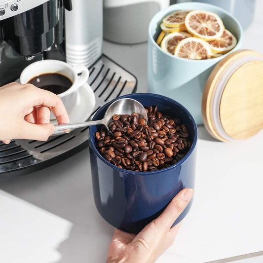 Kitchen Canisters 58 FL OZ Ceramic Food Storage Jar, Stackable Containers with Airtight Seal Wooden Lid for Serving Coffee Bean, Flour, Tea, Cookies and More (Navy)